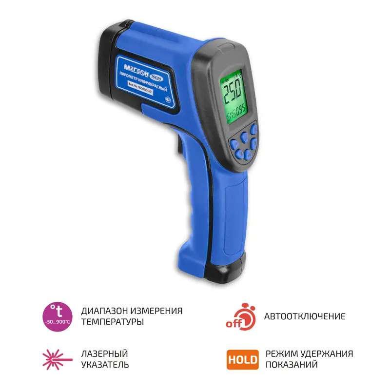 МЕГЕОН 16630 – это современный пирометр для бесконтактного замера температуры, внесенный в госреестр средств измерений. Он годится для разных сфер, где важен точный и безопасный контроль температуры объектов на расстоянии. Диапазон измерений от -50 до 900°C позволяет применять его и дома, и на производстве, например, для проверки отопления или контроля техпроцессов.