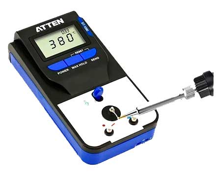 Паяльник-тестер. Чувствительный датчик измерителя ATTEN ST-1090 изготовлен из очень тонкой (диаметром 0,2 мм) металлической проволоки.