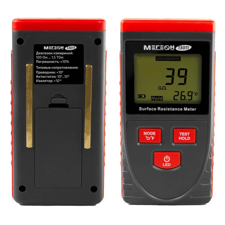 МЕГЕОН 13011 представляет собой переносной омметр для измерений сопротивления поверхностей из диэлектрических материалов.