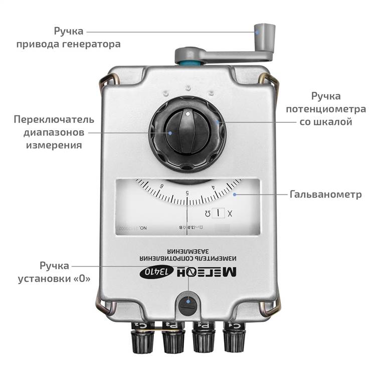 МЕГЕОН 13410 поддерживает проведение измерений по двух-, трёх- и четырёхпроводной схемам, что значительно расширяет его функциональные возможности. Встроенная мостовая схема измерений в сочетании с потенциальным электродом позволяет достичь максимальной точности при любых условиях эксплуатации. Для начала работы достаточно подключить щупы с зажимами типа "крокодил" к исследуемому объекту и вручную настроить диапазон измерений. Простота конструкции и понятное управление делают устройство удобным как для профессионалов, так и для начинающих пользователей.