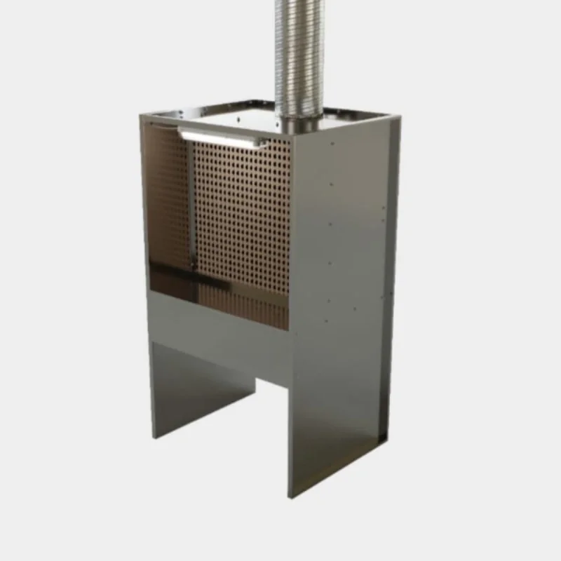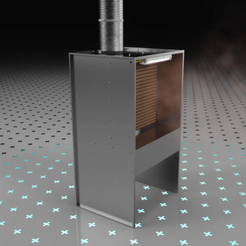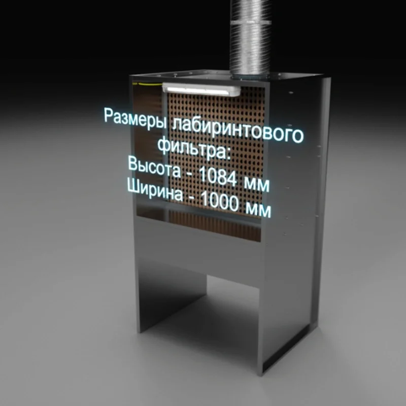Двухступенчатая фильтрация позволяет добиться показателя очистки воздуха 94%. Фильтрующими элементами лабиринтный фильтр и фильтры тонкой очистки. Вентилятор создаёт разряжение, которое обеспечивает забор воздуха из рабочей зоны.