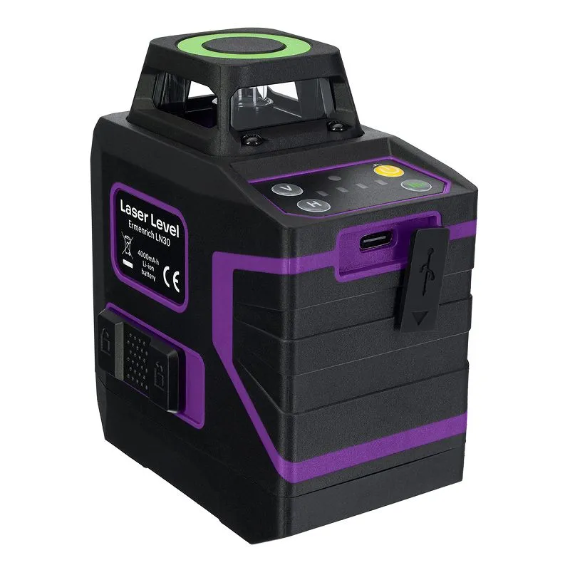 Лазерный уровень Ermenrich PLUS LN30 фиолетовый — это продвинутое решение для профессиональной разметки, объединяющее пять линий лазеров с высокой надёжностью и удобством эксплуатации. В рамках комплекта LN30 формирует одну горизонтальную и одну вертикальную плоскость, а также дополнительную пятилинейную конфигурацию, что обеспечивает широкую сетку ориентиров и максимальную гибкость при работе над крупными объектами. Благодаря встроенному литиевому аккумулятору 4000 мАч и USB-C зарядке с адаптером в комплекте LN30 готов к автономной работе длительное время, а индикатор низкого заряда помогает заранее планировать подзарядку.