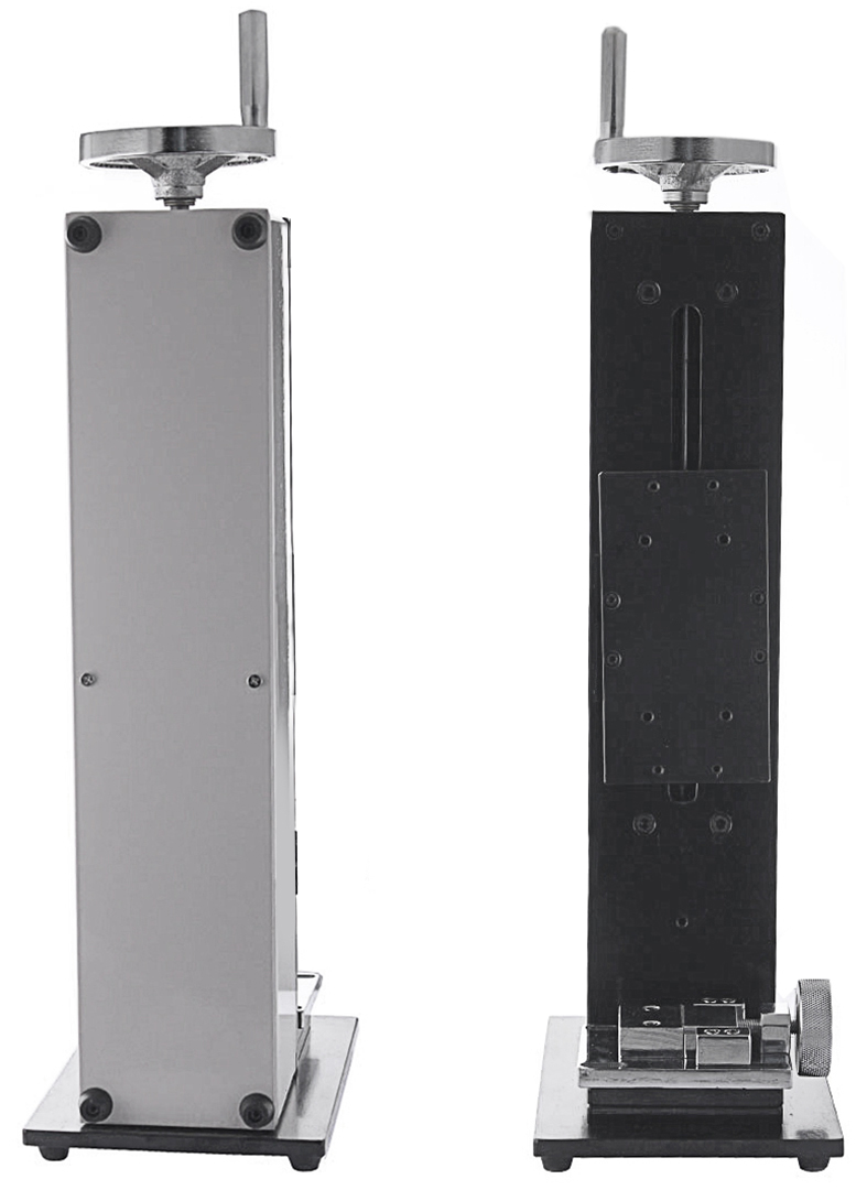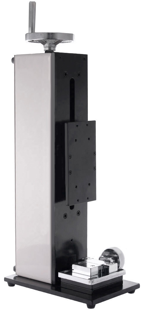 Испытательный стенд сжатия с рычажным механизмом подачи суппорта. В конструкции заложена возможность изменения высоты положения механизма подачи относительно основания. Основные узлы конструкции имеют антикоррозионное покрытие.